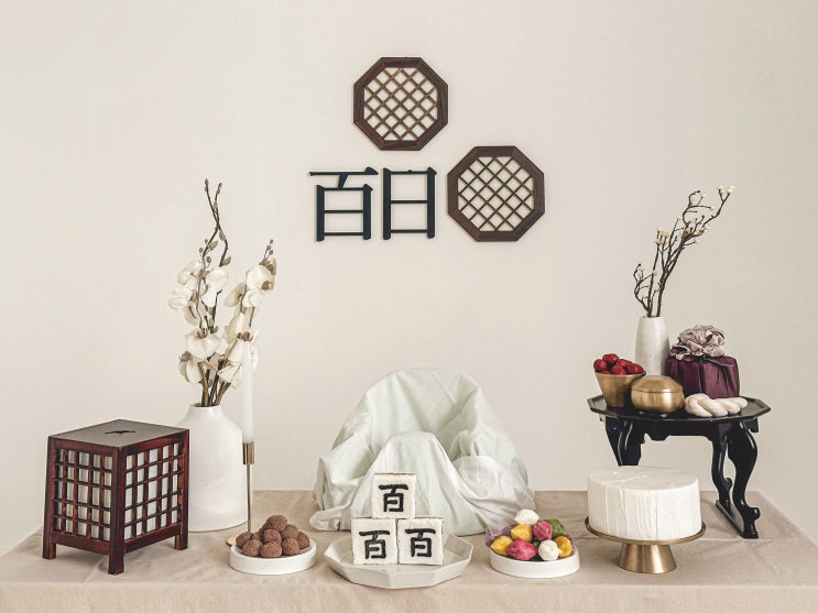 백일상대여 심플하고 고급스러운 전통백일상 더테이블 사랑스런 조카의 100일 ! 전통백일상으로 예쁘게 촬...