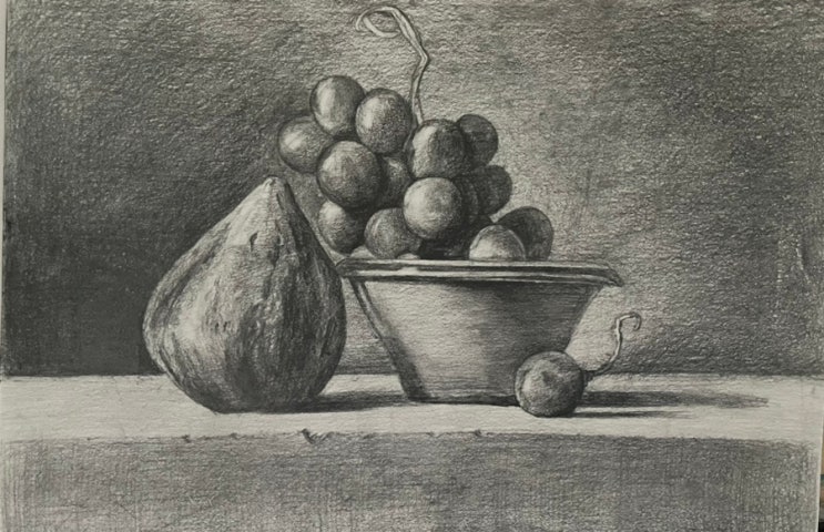 이번엔 드로잉에 도전해본다. 무화과와 포도가 있는 정물이다. 연필 하나만으로 형태를 나타내고 질감을 표...