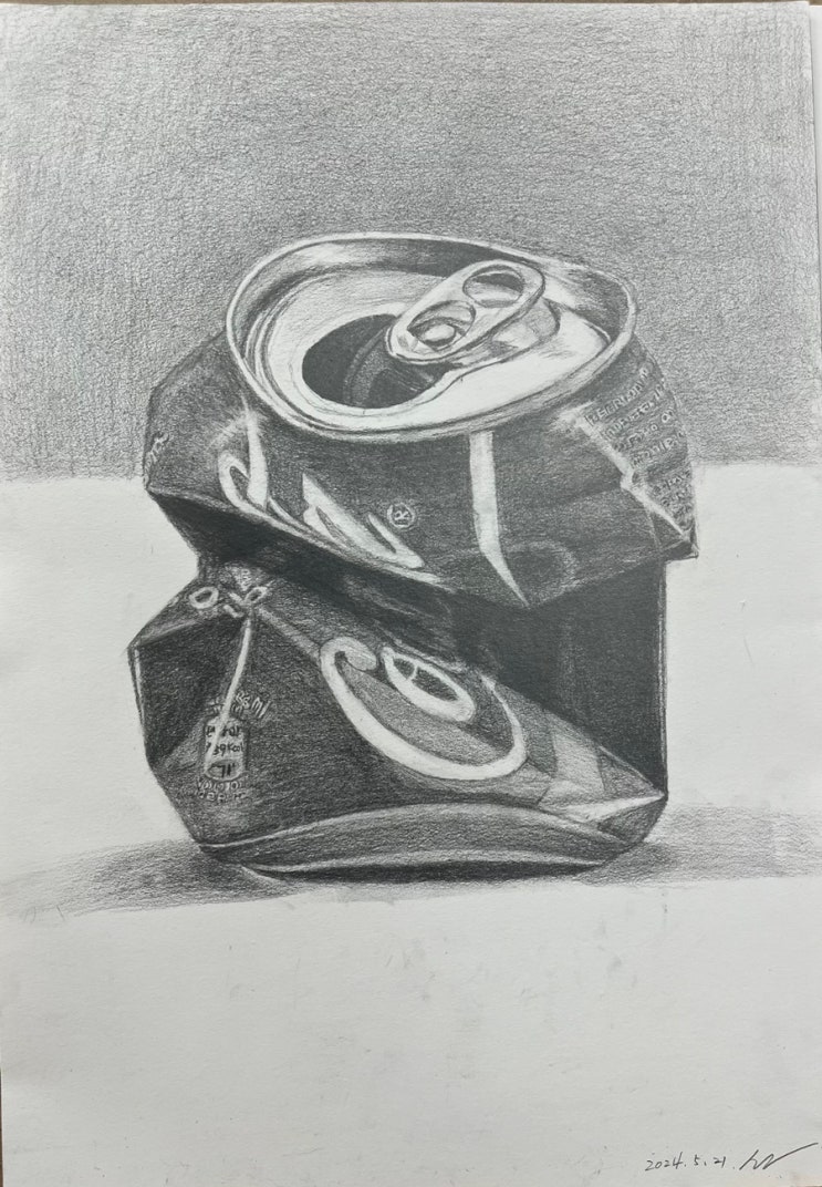 이 그림은 퍽 어려웠다. 찌그러진 캔의 형태감도 그렇고 특히 코카콜라 로고와 잔글씨가 있어 표현하기가 ...
