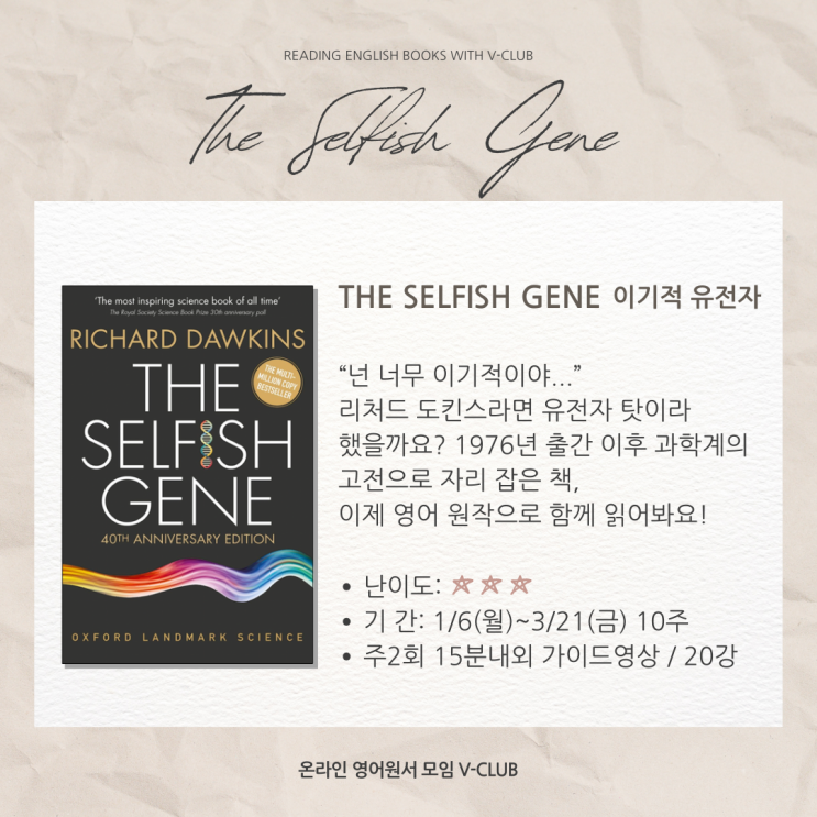 [모집] 2025년 1월 V3 첫 영어원서_이기적 유전자
