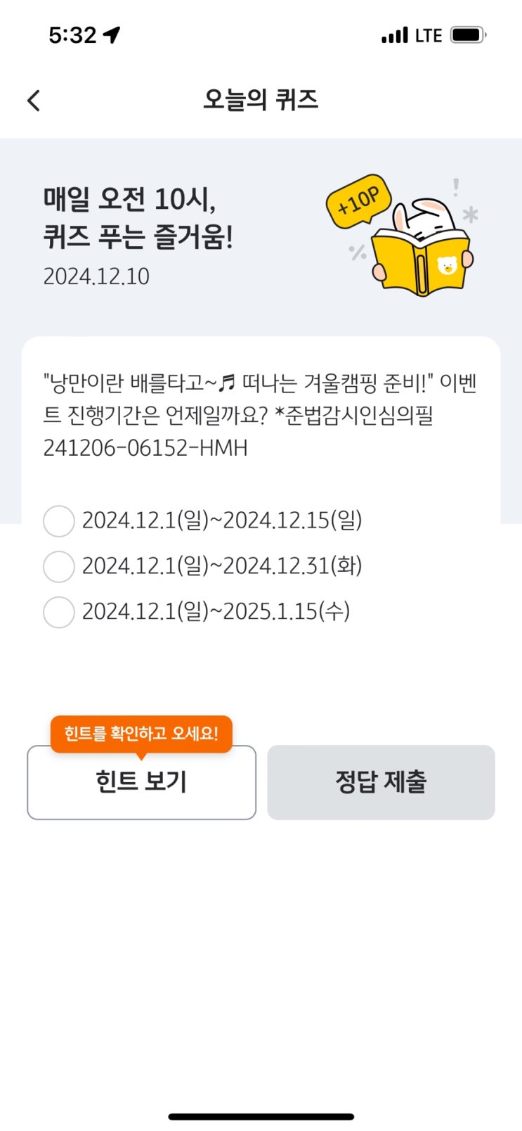 국민 리브메이트 오늘의퀴즈 12/10일자 정답