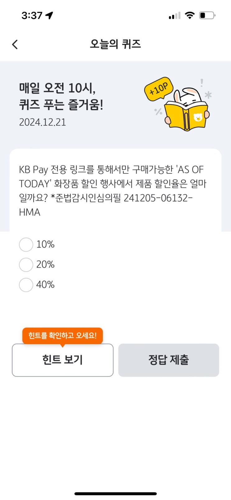 국민 리브메이트 오늘의퀴즈 12/21일자 정답