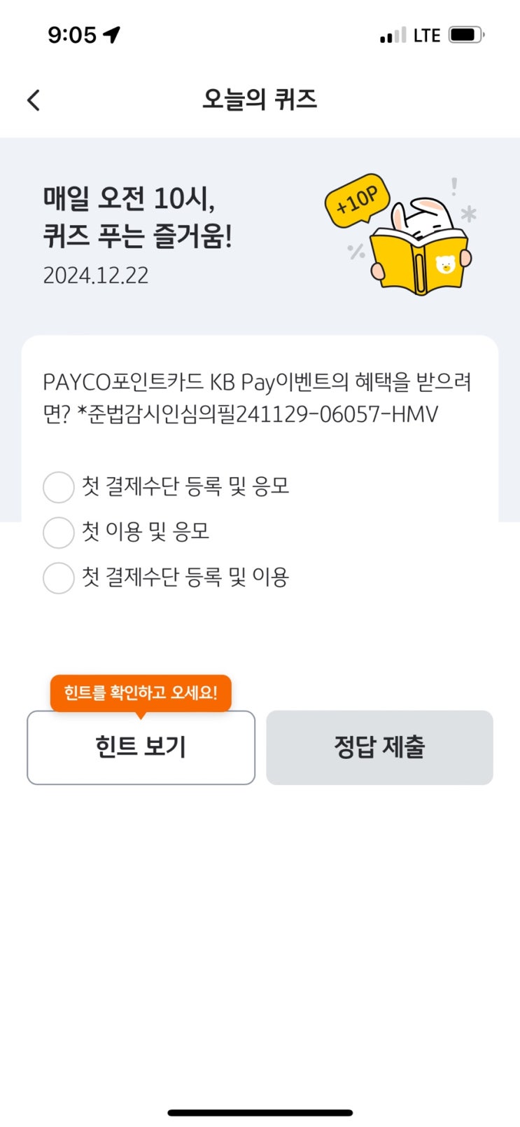 국민 리브메이트 오늘의퀴즈 12/22일자 정답