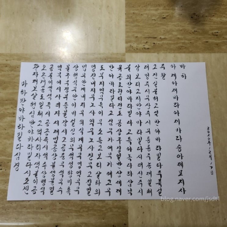 한글 캘리그라피 반야심경(2020.12.20.~21.)