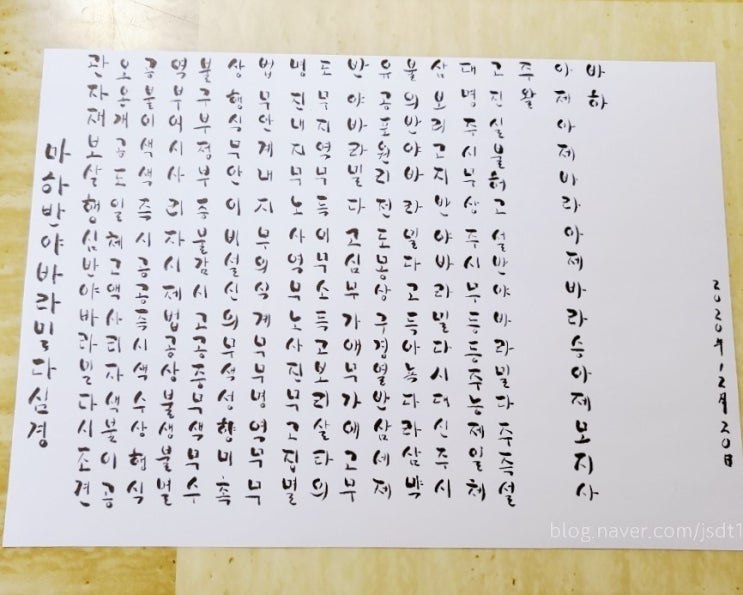붓펜으로 한글 반야심경 쓰기_ 그림자글씨체 & 캘리그라피 연습(2020.12.26.~12.28.)