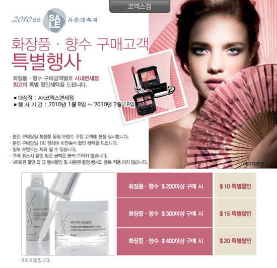 AK면세점 이벤트 화장품/향수 구매고객 특별행사 기간 : 10.01.08 ~ 10.02.18 대상 : 코엑스점 &n...