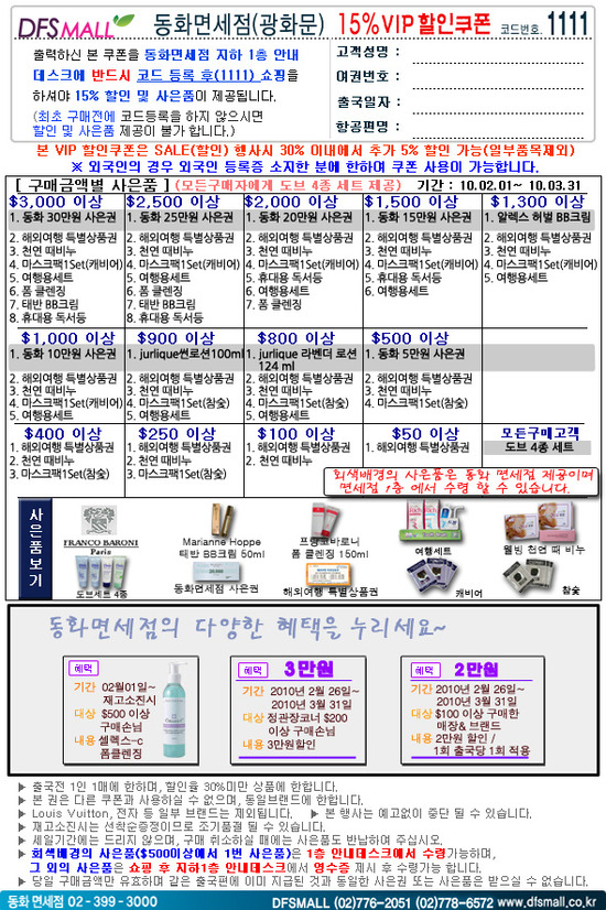 ★누구나 무료로 사용가능한 면세점 15% 할인쿠폰을 드리는 DFSMALL 입니다★     워커힐...