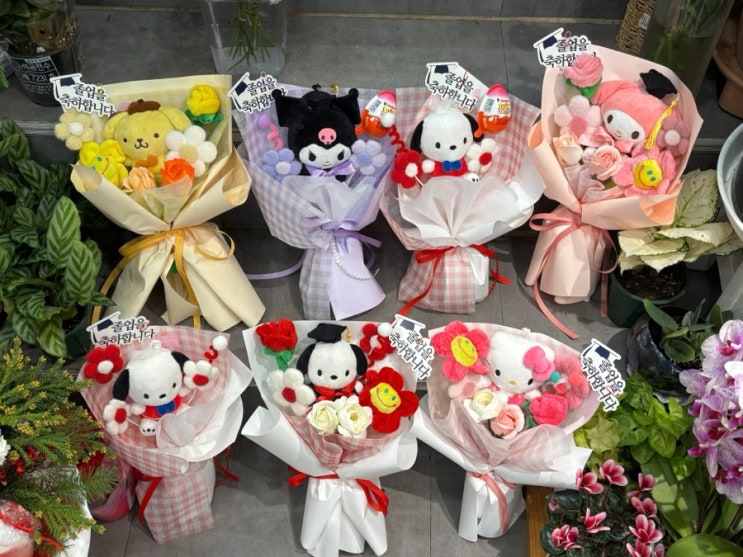 수원 졸업식 꽃다발 산리오 인형꽃다발 ❣️ 이색적이고 특별하게 졸업식 꽃다발 오래두고 볼 수 있어 좋아...