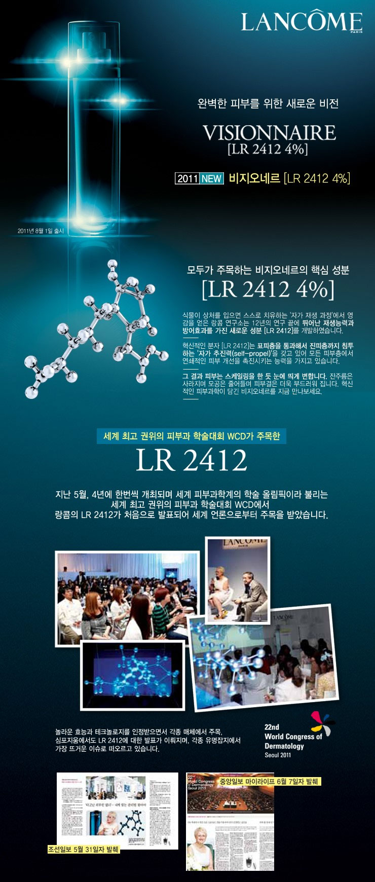 랑콤에서 신제품 비지오네르 LR 2412 4% 스킨코렉터가 8월 1일 출시된다고 합니다.. 혁신적인 분...