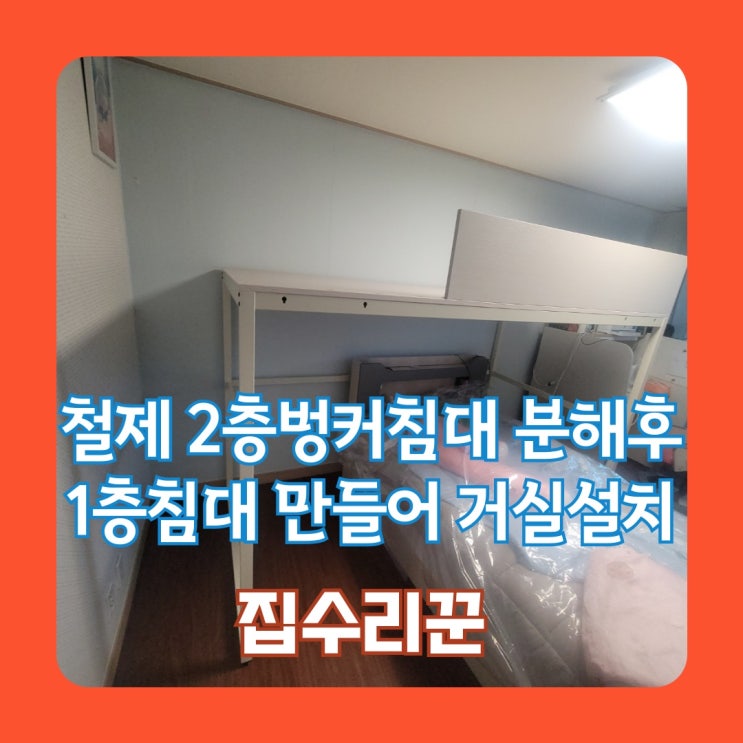 철제 2층벙커침대 분해후 1층침대만들어서 거실에 설치