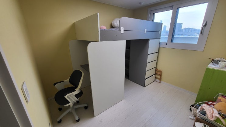 2층 벙커침대 분리, 책상과 책장과 침대 1층 사용하게 만들기