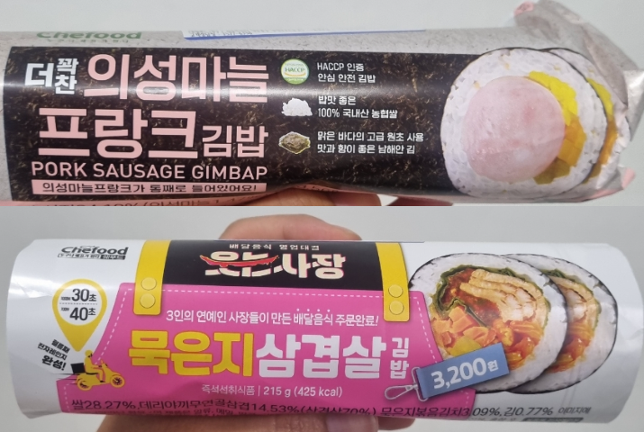 [메뉴도장깨기] 세븐일레븐 편의점 김밥 더 꽉찬 의성마늘 프랑크 김밥 & 묵은지삼겹살 김밥