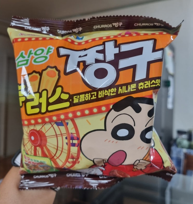 오늘도 시간여행 :) 작년 추석때 먹었던 삼양 짱구 츄러스 사촌동생들하고 맥주한잔하며 먹었는데 굉장히 ...