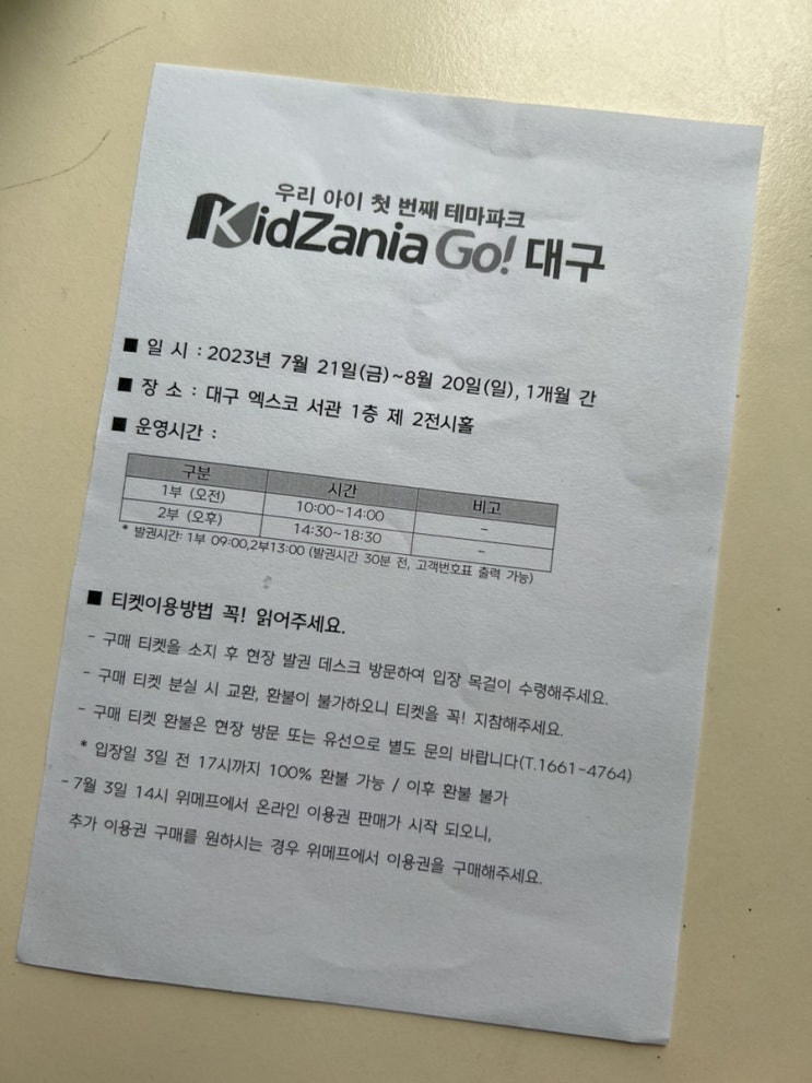 키자니아 GO! 대구 환불