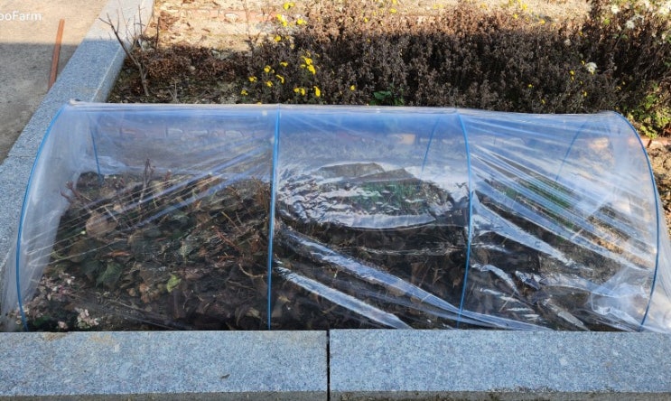 수국 겨울 준비, 비닐 씌워주기, 미니 비닐하우스