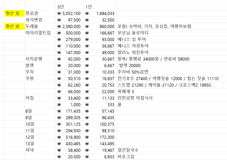 [이탈리아여행 밀라노 베니스 5박 7일] 경비 정산 完