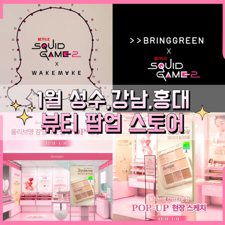 1월 성수 강남 홍대 웨이크메이크 브링그린 오징어게임2 데이지크 뷰티 팝업 스토어 시간 기간 예약~