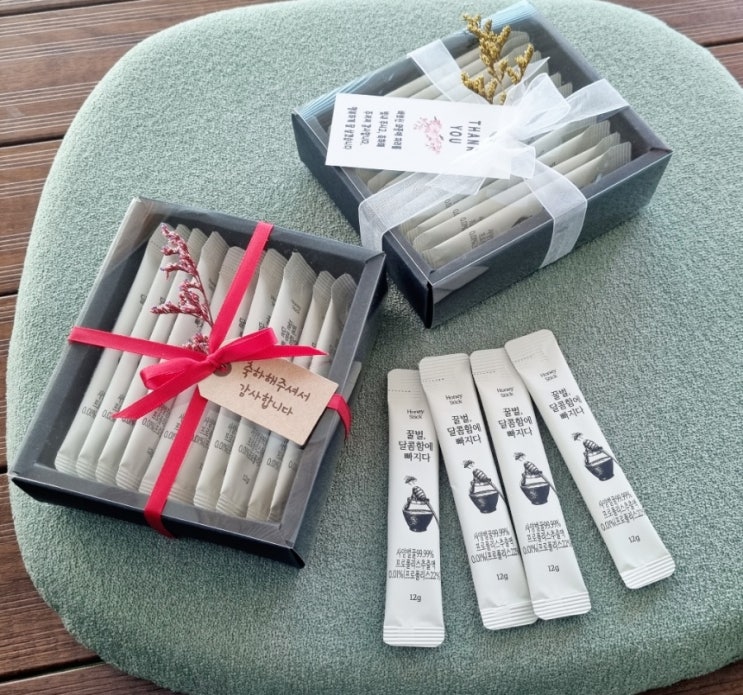 센스있는 답례품은 디어모어에서 준비하세요! 결혼식 하객 조문 돌잔치 육아휴직 꿀스틱 회사 답례품 추천(Dear:More)