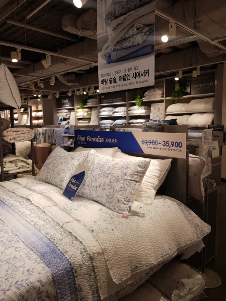 애들 여름티셔츠사러 나왔다가 모던하우스에 들렀어요 모던하우스 시어서커 이불 세일중 입니다 피구먼트 ...