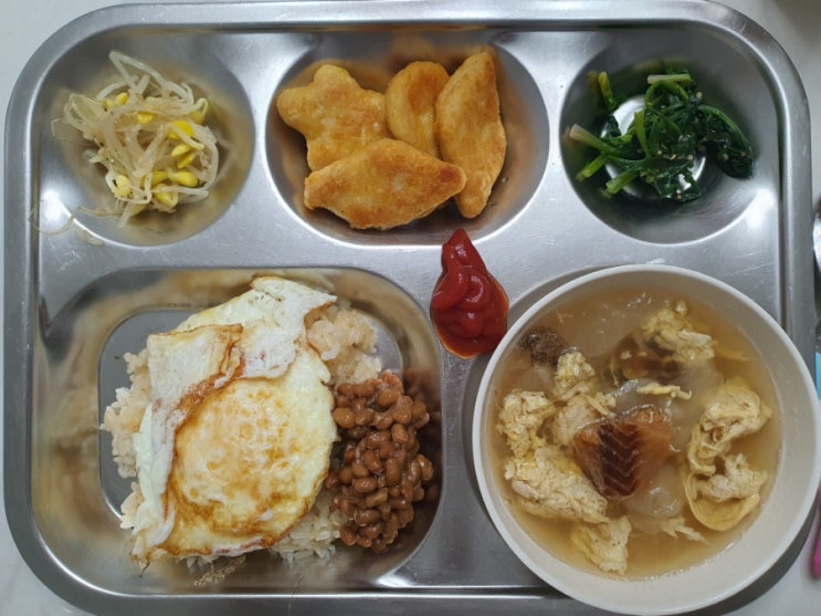 워킹맘 아이밥상 378 [낫토간장계란밥, 황태계란국, 치킨너겟, 섬초나물무침, 콩나물무침] 날씨도 계속 추...