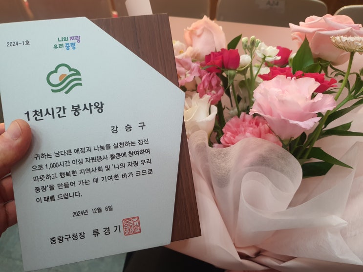 2024년도 12월 6일 중랑구 자원봉사자의 날 기념식이 개최되어서 다녀와 보았어요. 11월 5일경 자원봉사자...