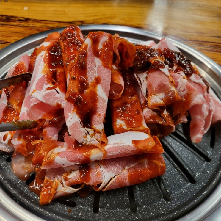 비 오는 날 생각나는 매콤한 열탄불고기! 매콤한 돼지 열탄불고기와 7분돼지김치짜글이랑 함께 먹으면 천상...