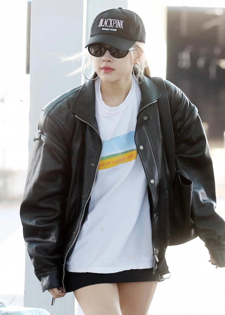 드디어 파리 패션위크 간다 첫 타자는 로제 오늘 공항사복 착장 완전 맘에들어욥 일단 벎키한 남자 가죽자...
