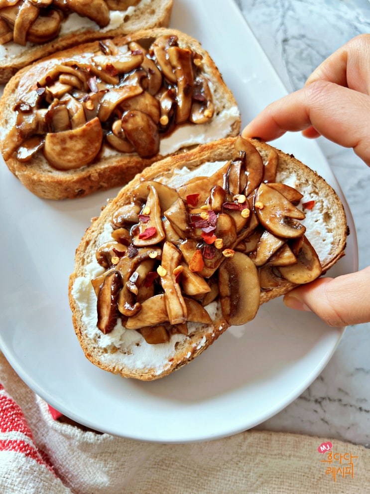 리코타치즈 버섯 오픈 샌드위치 만들기 발사믹글레이즈 요리