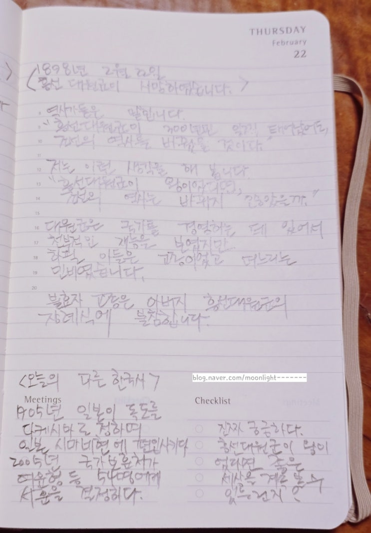 FEBRUARY 22 오늘 한국사 필사 1898년 흥선대원군 사망 1905년 일본이 지들 마음대로 독도를 다케...