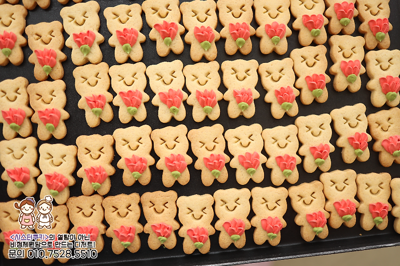 김포 장기동에 위치한 카페 시스터쿠키에요! 지금 한창 스승의날선물로 바쁜 주간인데요~ 예쁜 카네이션 들고있는 수제쿠키 곰돌이들이 너무 귀여운데 이렇게 모여있으니 더더욱 귀여운 느낌