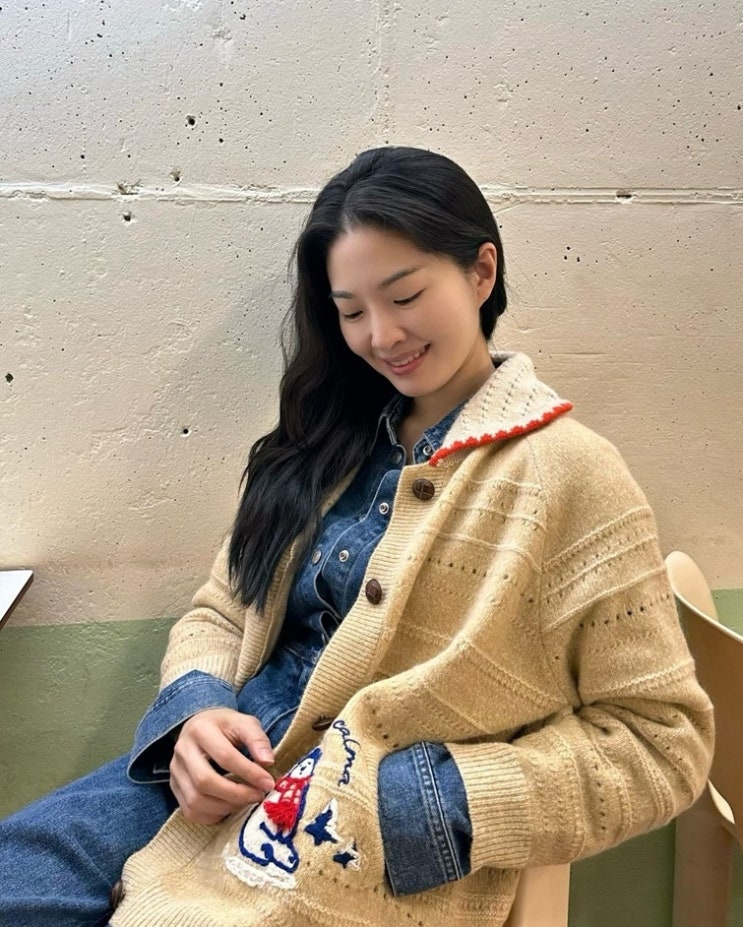 41세 맞아? 류이서 사복 패션 베네통 니트 가디건 러블리 그자체