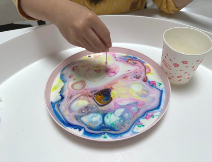엄마표 미술놀이 우유 마블링 물감, 우유 구슬 만들기