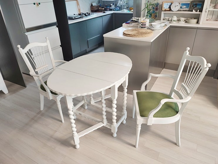 [수원가구리폼] 오래된 엔틱가구 화이트 빈티지가구로 리폼하기...엔틱의자+엔틱테이블리폼,흥일가구리폼,쉐비스타일리폼,원목가구리폼,가구칠,도색,페인팅,색상변경,가구리폼업체,화목금스타일