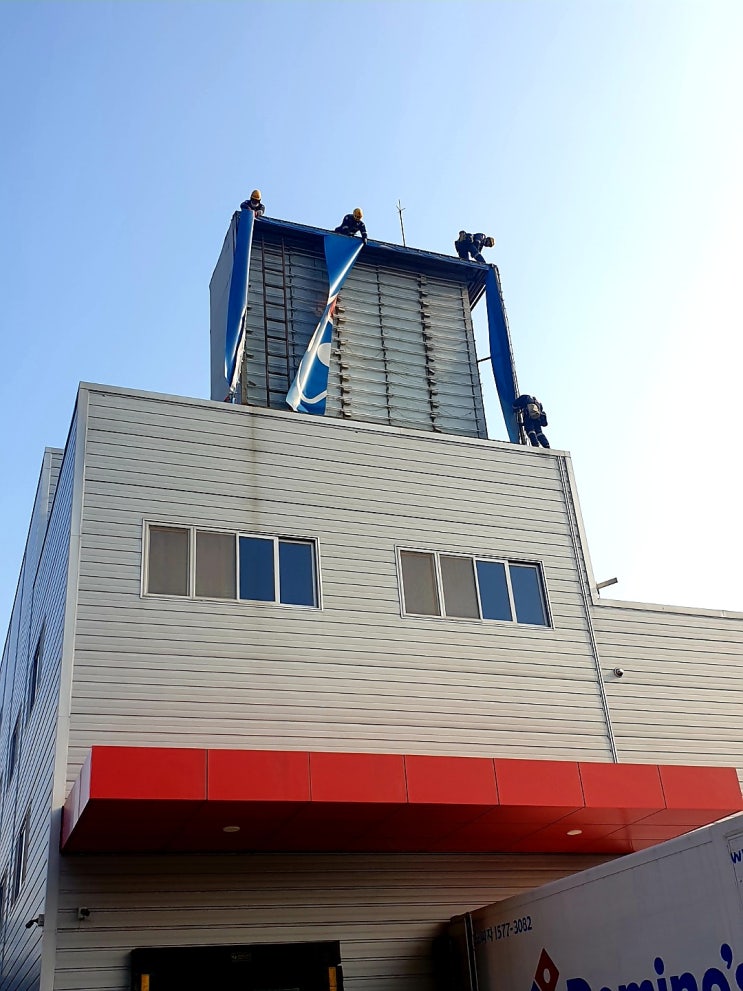 천안 도미노피자공장 빌보드 원단교체작업