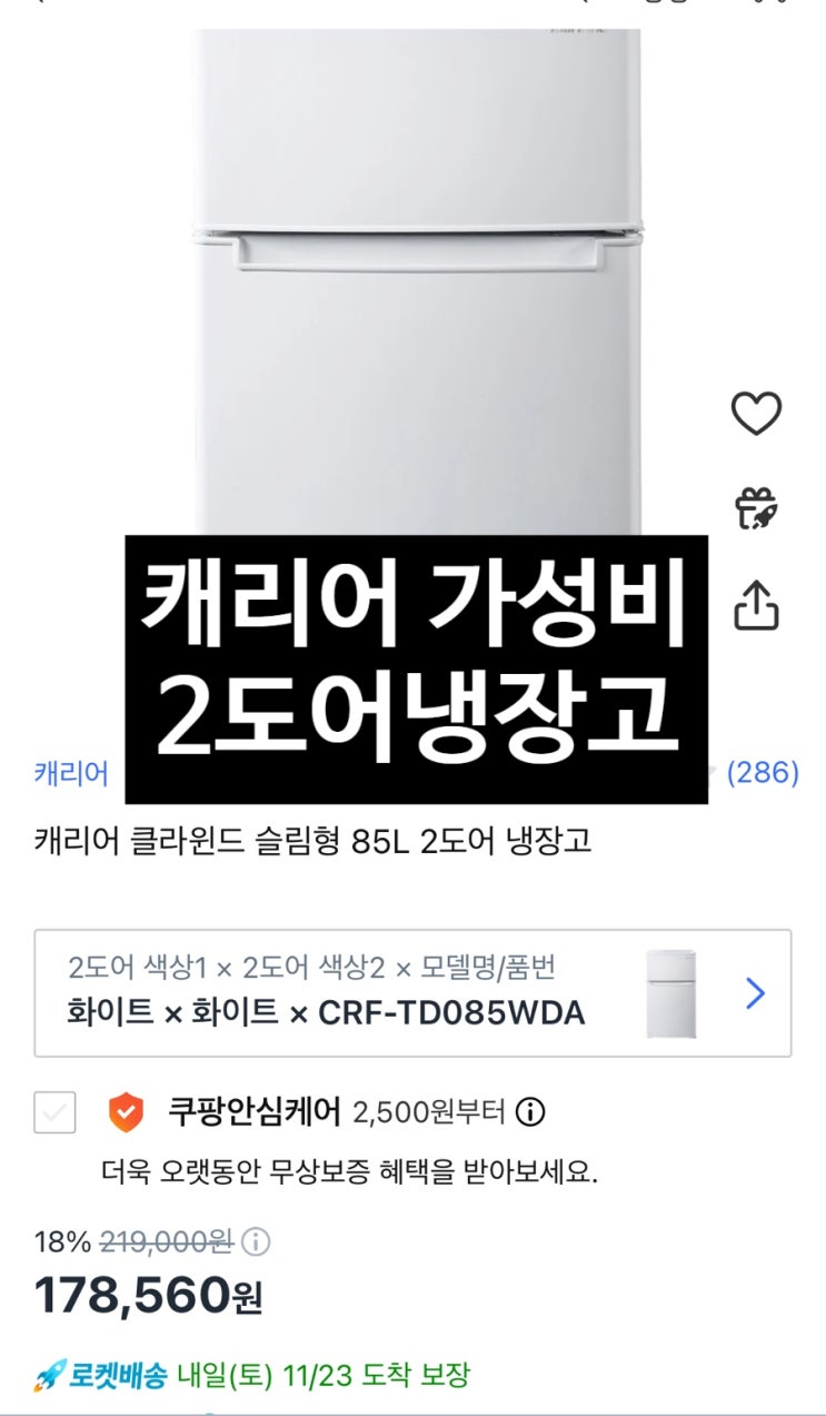 캐리어 냉장고 구입하다(쿠팡)
