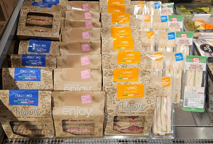 돌로미티 여행: 오르티세이 슈퍼마켓 Despar 구비 물품과 가격 (샌드위치 등)