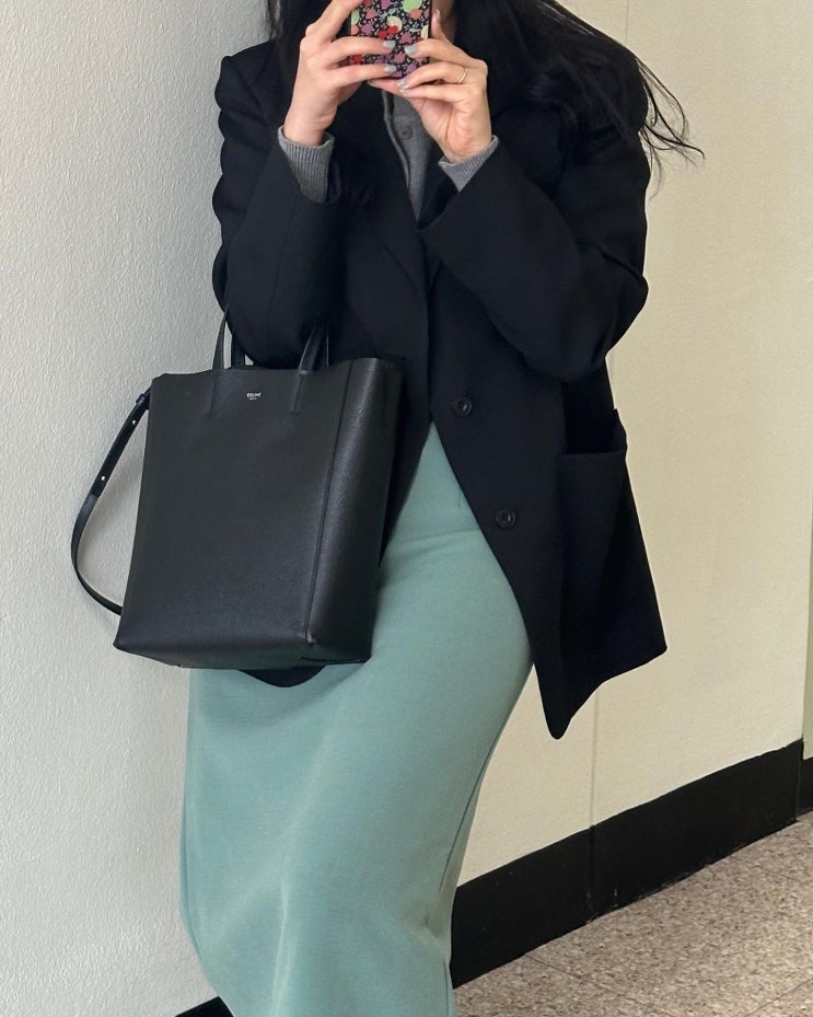 4월 데일리룩 / 오피스룩 겸 총회룩 (헤지스 블랙자켓, H라인 스커트, 셀린느 카바스백)