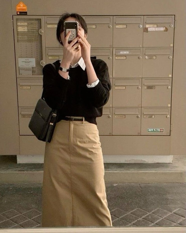 니트 치마 코디 H라인 스커트 실루엣을 살리는 꾸안꾸룩