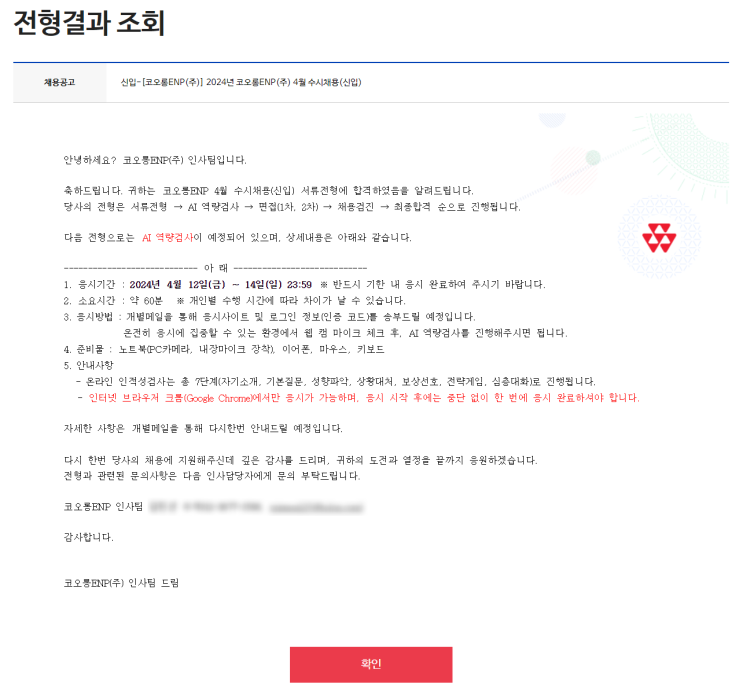 안녕하세요! 오늘은 코오롱ENP 2024년 4월 수시채용(신입) 인사 직무 AI역량검사 합격 후기를 작성해 ...