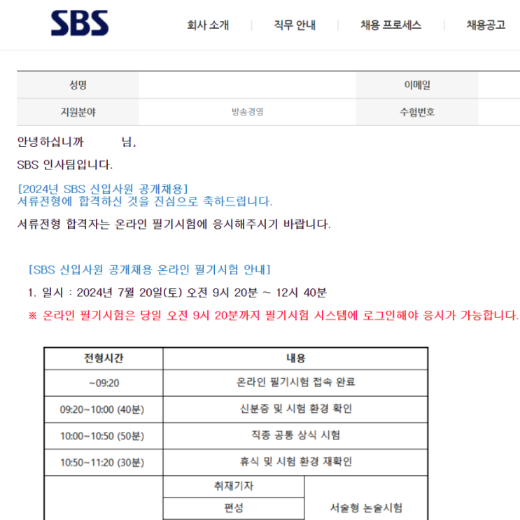 안녕하세요! 오늘은 2024년 SBS 신입사원 공개채용 방송경영 직무 온라인 필기시험 응시 후기를 작성해 ...