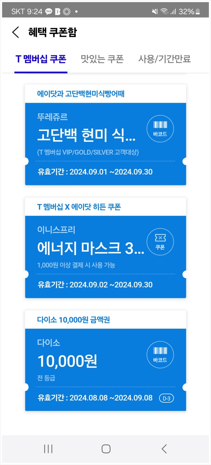 T멤버십 에이닷 히든쿠폰 사용 / 이니스프리 첫구매 0원쇼핑 후기