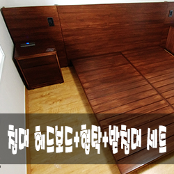 NMS-73 원목 침대 헤드보드+협탁+매트리스받침대 세트