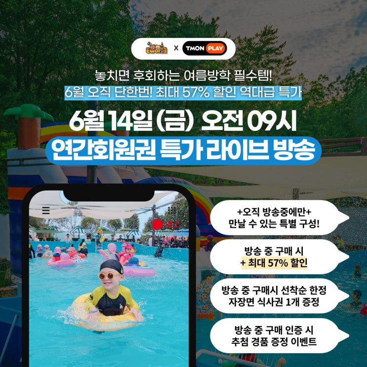 이월드 연간회원권 특가 라이브방송? 6월 14일 (금) 오전 9시 with 티몬플레이