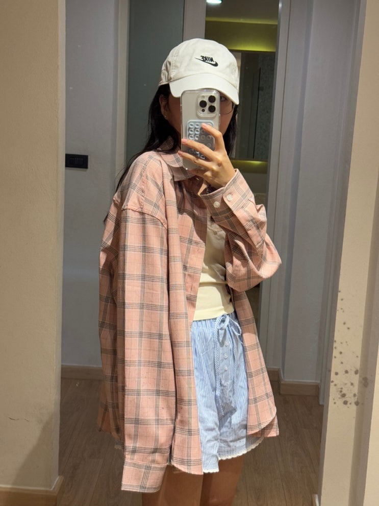 핑크 셔츠 여자 타탄 체크 남방 코디