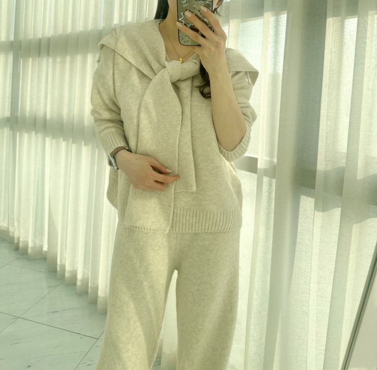 각각 단품으로 활용하기에도 좋고 세트로 착용해도 좋은 니트상하세트 여유있는 사이즈로 세련되면서도 편...