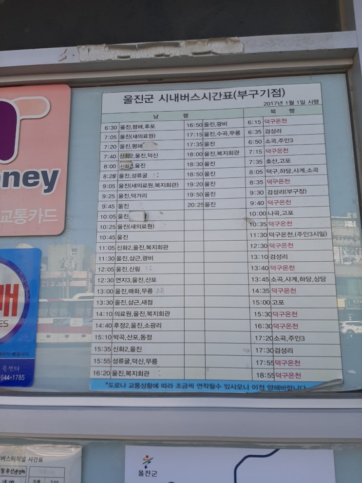 2023년 1월 23일 기준 울진 부구터미널 시간표이다. 부구기점 울진군 시내버스 시간표이다. 시외버스 시간...