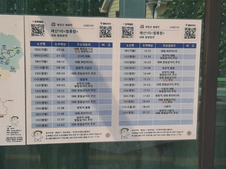 평창역 재산1리 버스시간표(2023.6.11)