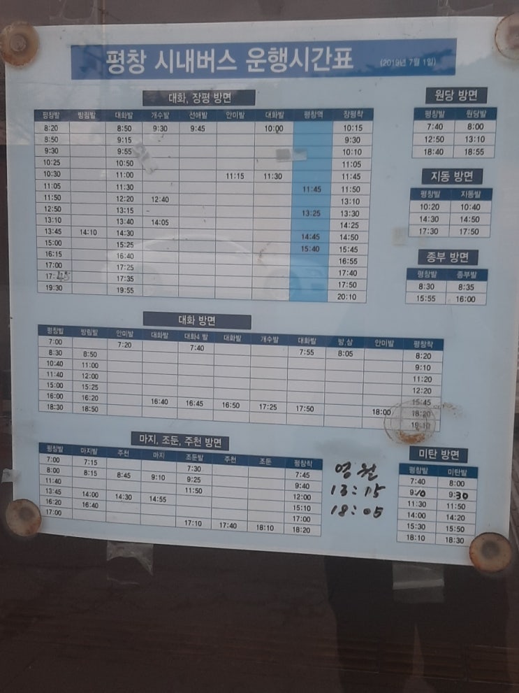 평창터미널 시간표 및 요금(2023.6.11)