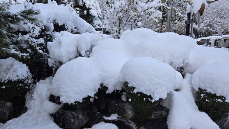첫눈이 밤새 소복하게 쌓이고도 낮 하루종일 내렸다 11월 27일에 첫눈. 예년보다 늦은 것 같은데. . . 바람...