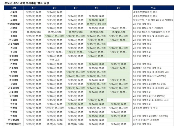 2025학년도 주요대학 수시 추가합격 발표일정